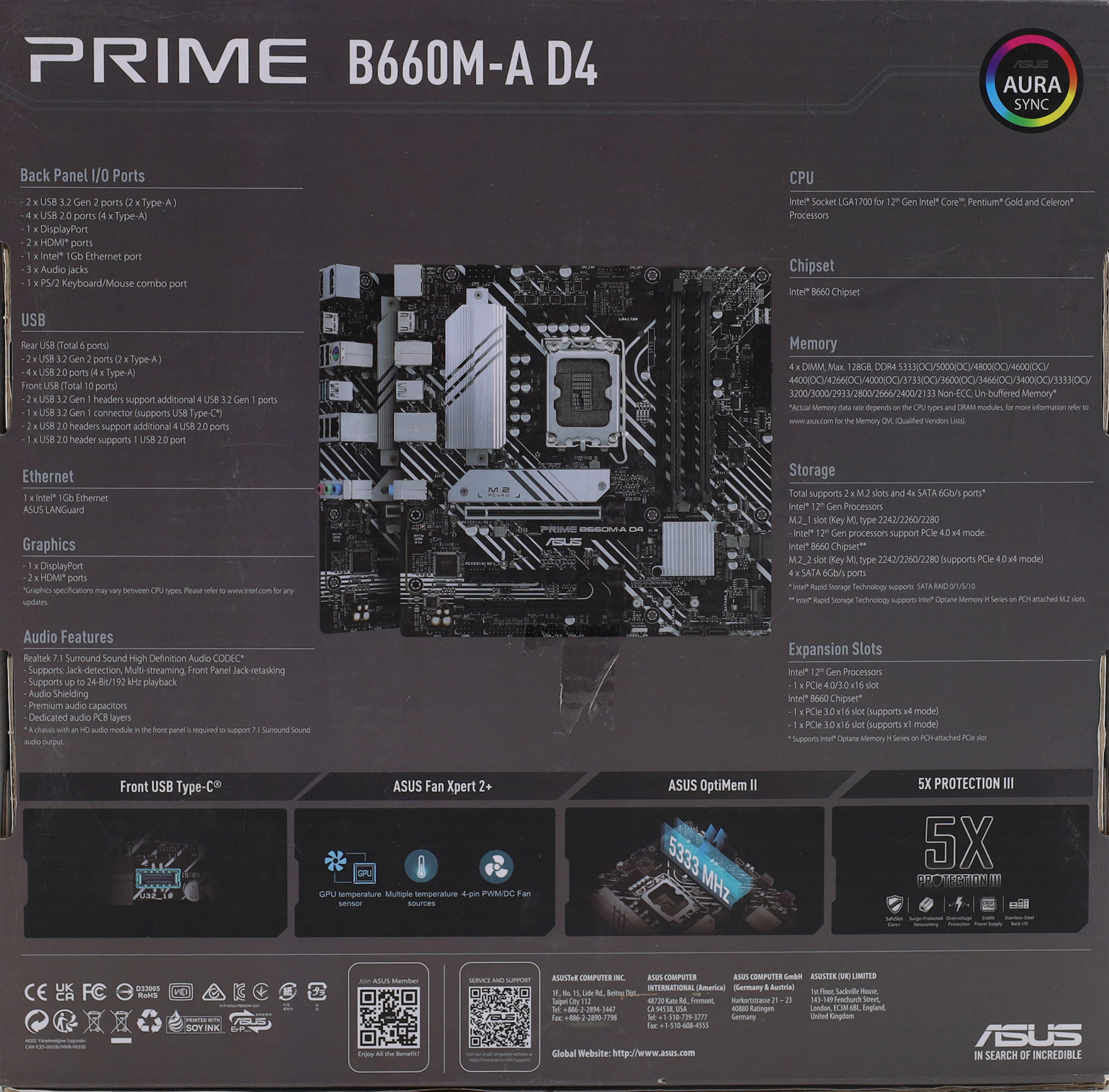 ASUS PRIME B660M-A D4 Gaming Mainboard Sockel Intel LGA 1700 Intel B660 mATX