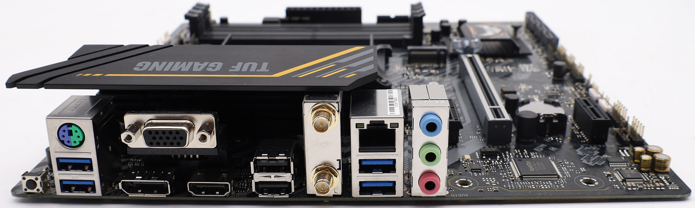- Anschlüsse extern: 1x DisplayPort 1.2 (iGPU), 1x HDMI 2.1 (iGPU), 1x VGA (iGPU), 4x USB-A 3.0 (5Gb/s), 2x USB-A 2.0 (480Mb/s), 3x 3.5mm Klinke (Realtek ALC887), 1x RJ-45 (1000Base-T, Realtek), 1x PS/2 Combo, 2x Antennenanschluss RP-SMA
