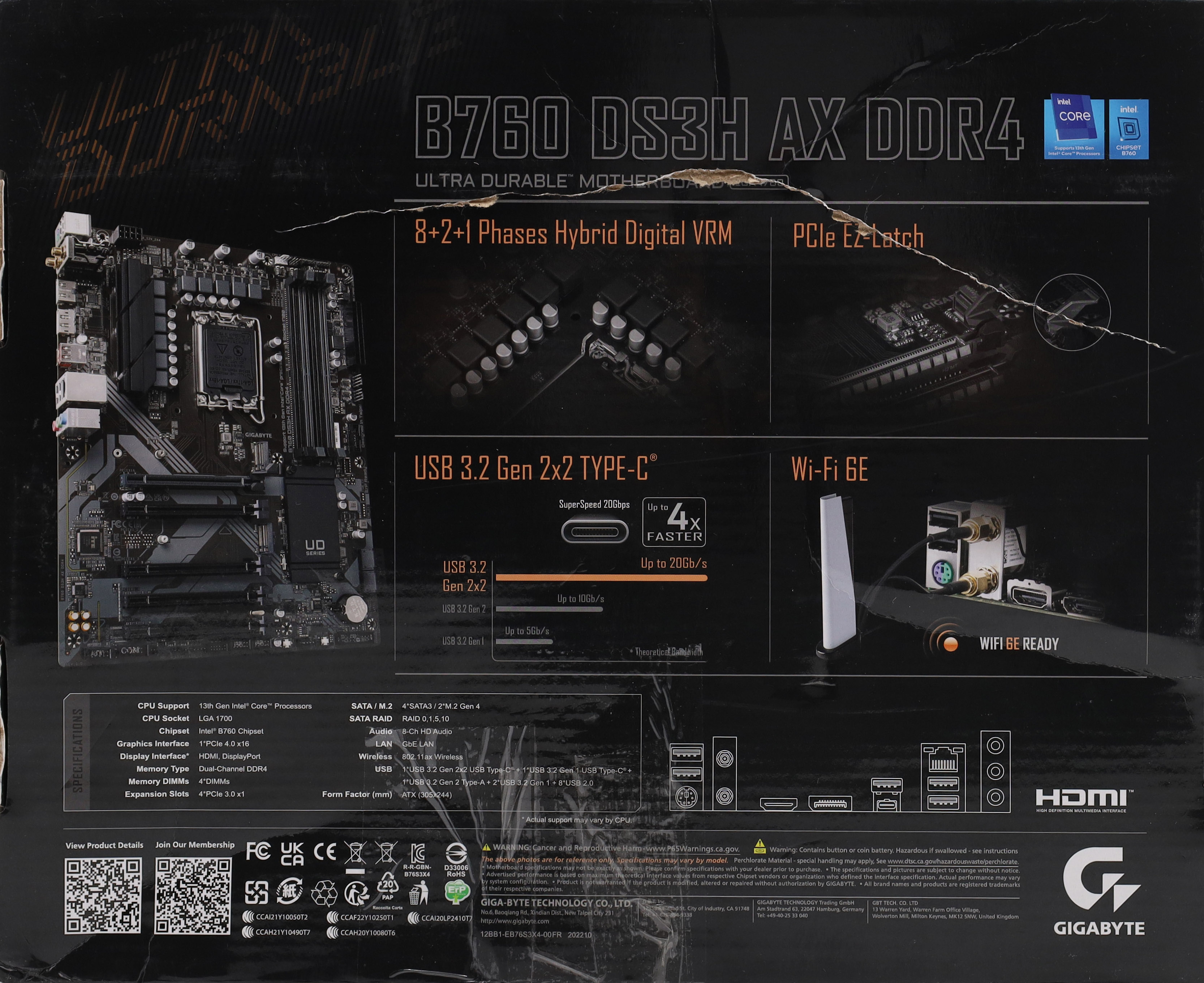GIGABYTE B760 DS3H AX DDR4 Mainboard ATX LGA1700 DDR4 Intel B760 OHNE Zubehör
