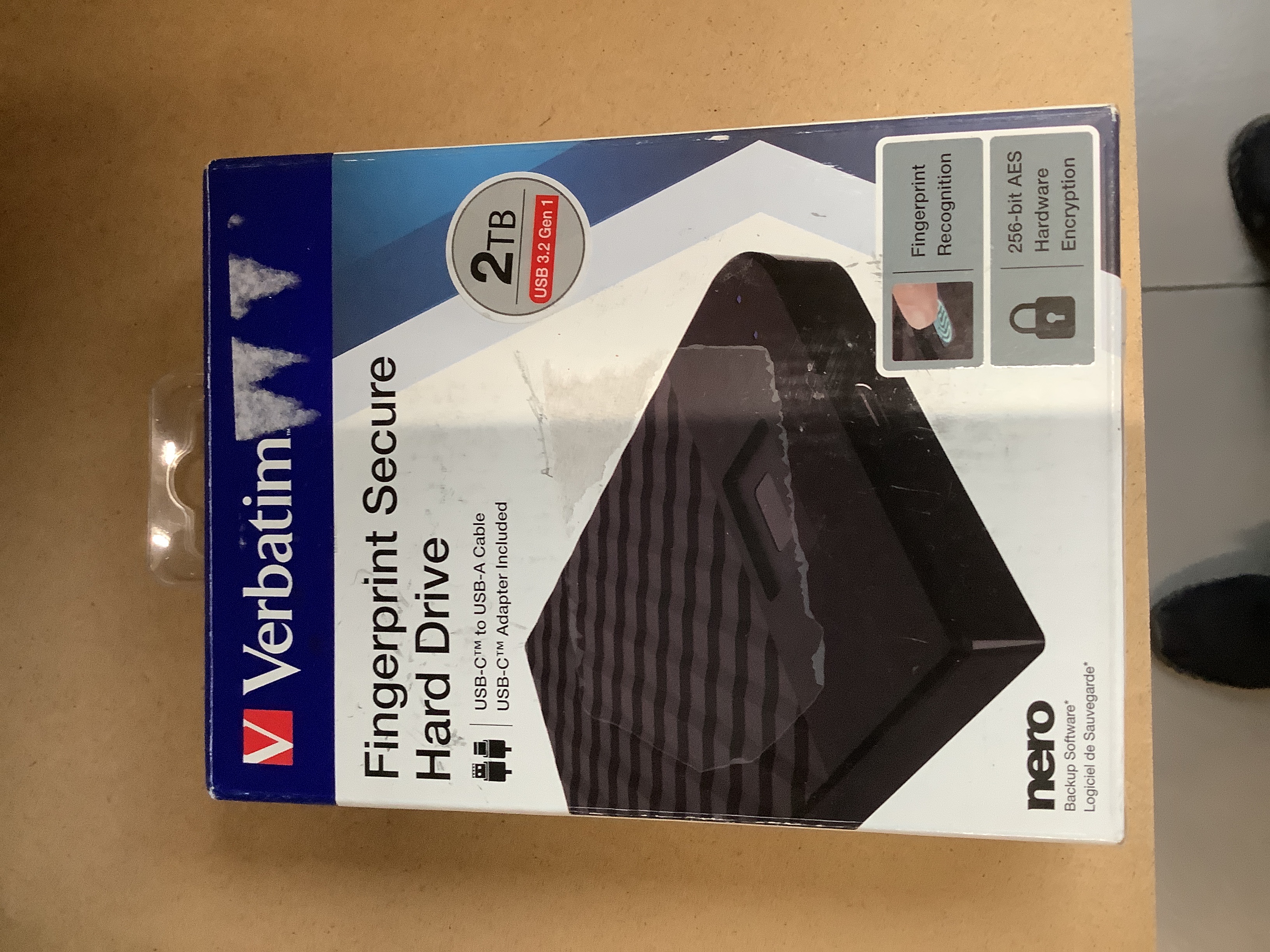 Verbatim 53651 Fingerprint Secure Tragbare externe Festplatte 2 TB , 2,5", USB-C schwarz