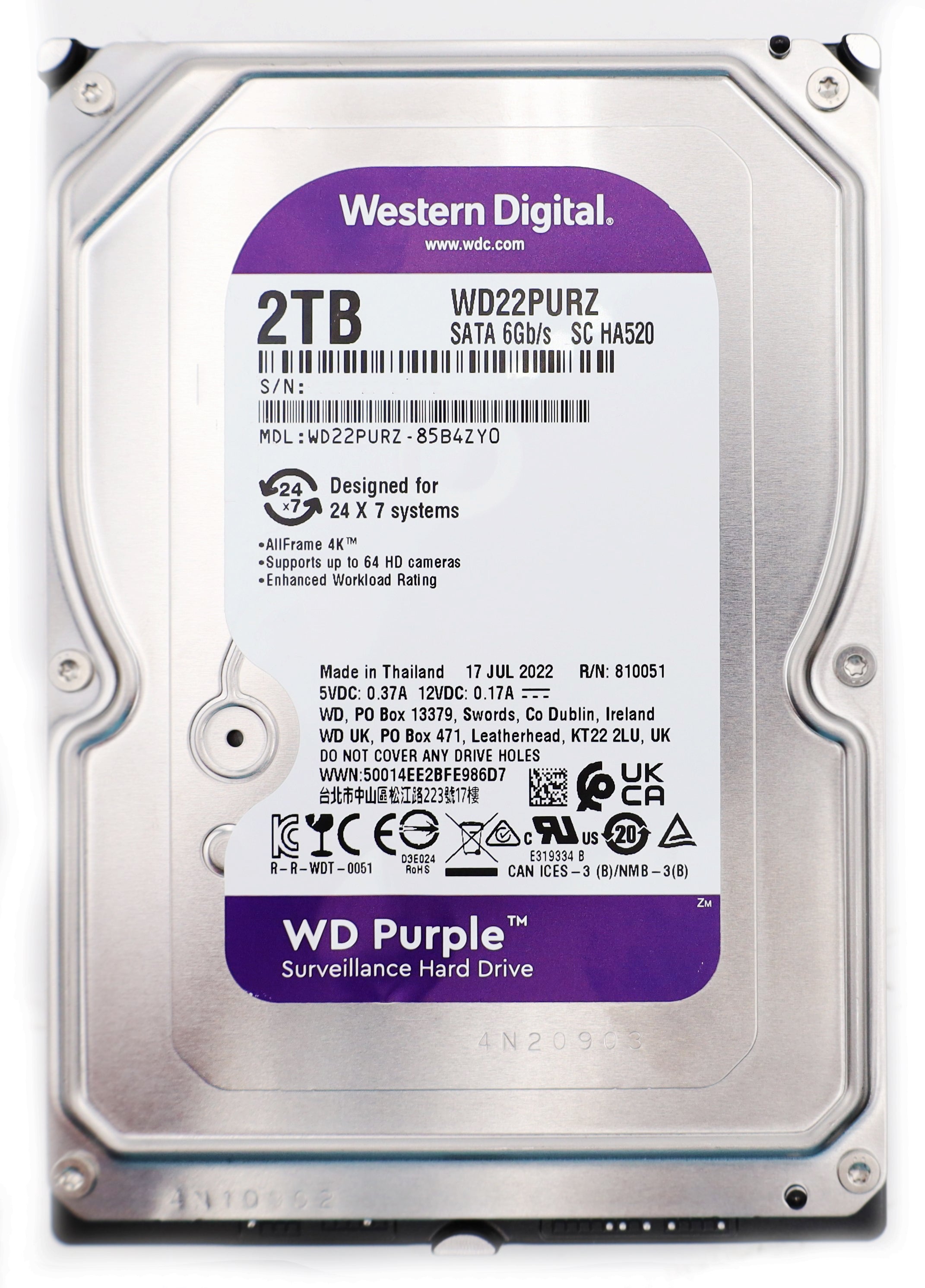 Western Digital WD Purple 2TB 24/7 512e 3.5" SATA 6Gb/s WD22PURZ