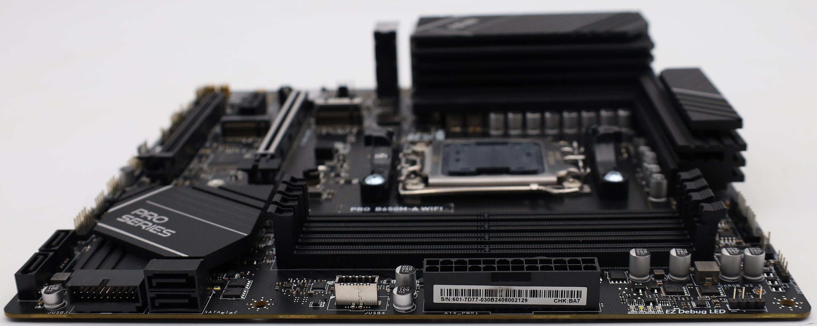 - M.2-Slots: 2x M.2/M-Key (PCIe 4.0 x4, 2280/2260), 1x M.2/E-Key (2230, belegt mit WiFi+BT-Modul)